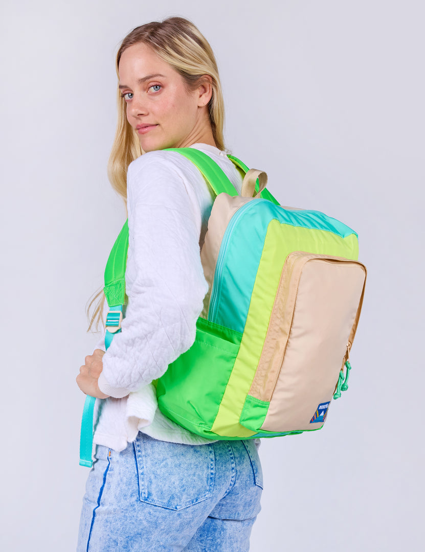 The Flyer Pack features a large front pocket with pen slots & card pocket, a main compartment with padded sleeve that fits up to a 16" laptop, lining zipper pocket, 3D water bottle side pockets, a suitcase trolley sleeve for easy travel, adjustable padded back straps with no fail strap construction, and coordinating paracord pulls for easy opening!